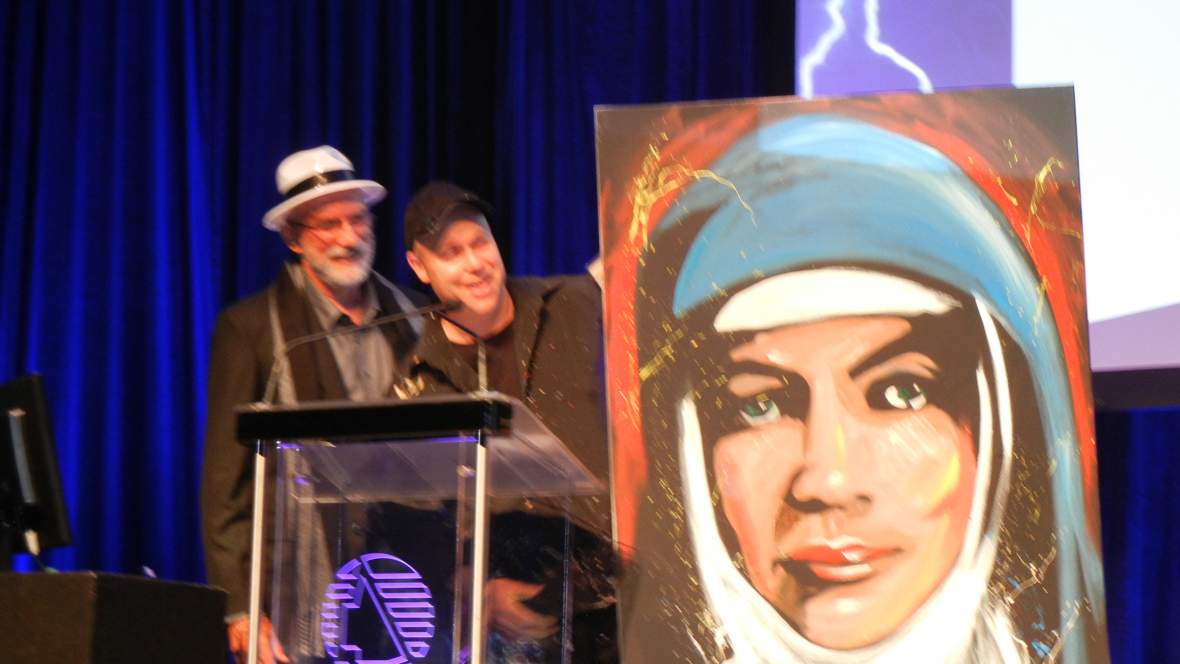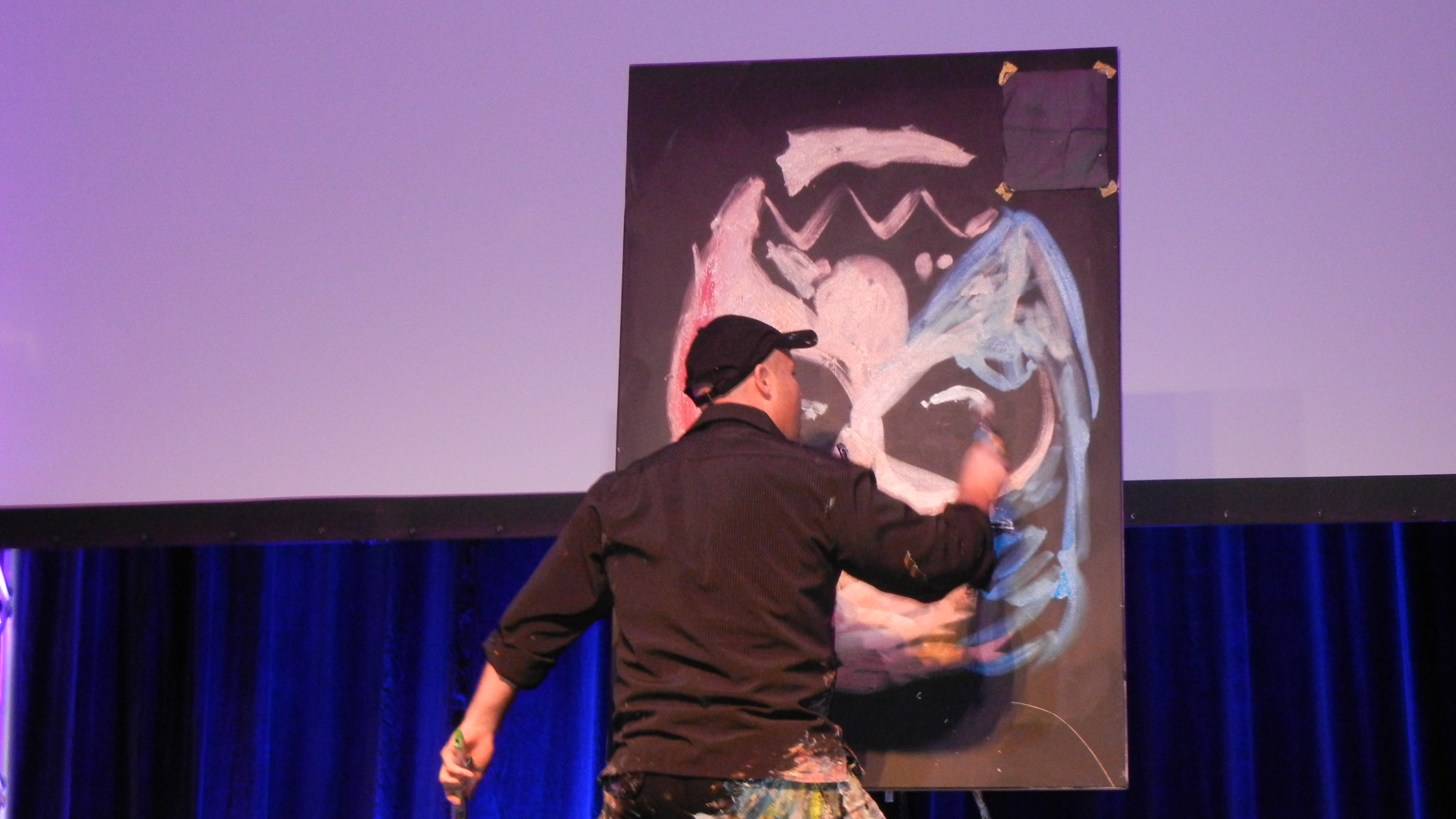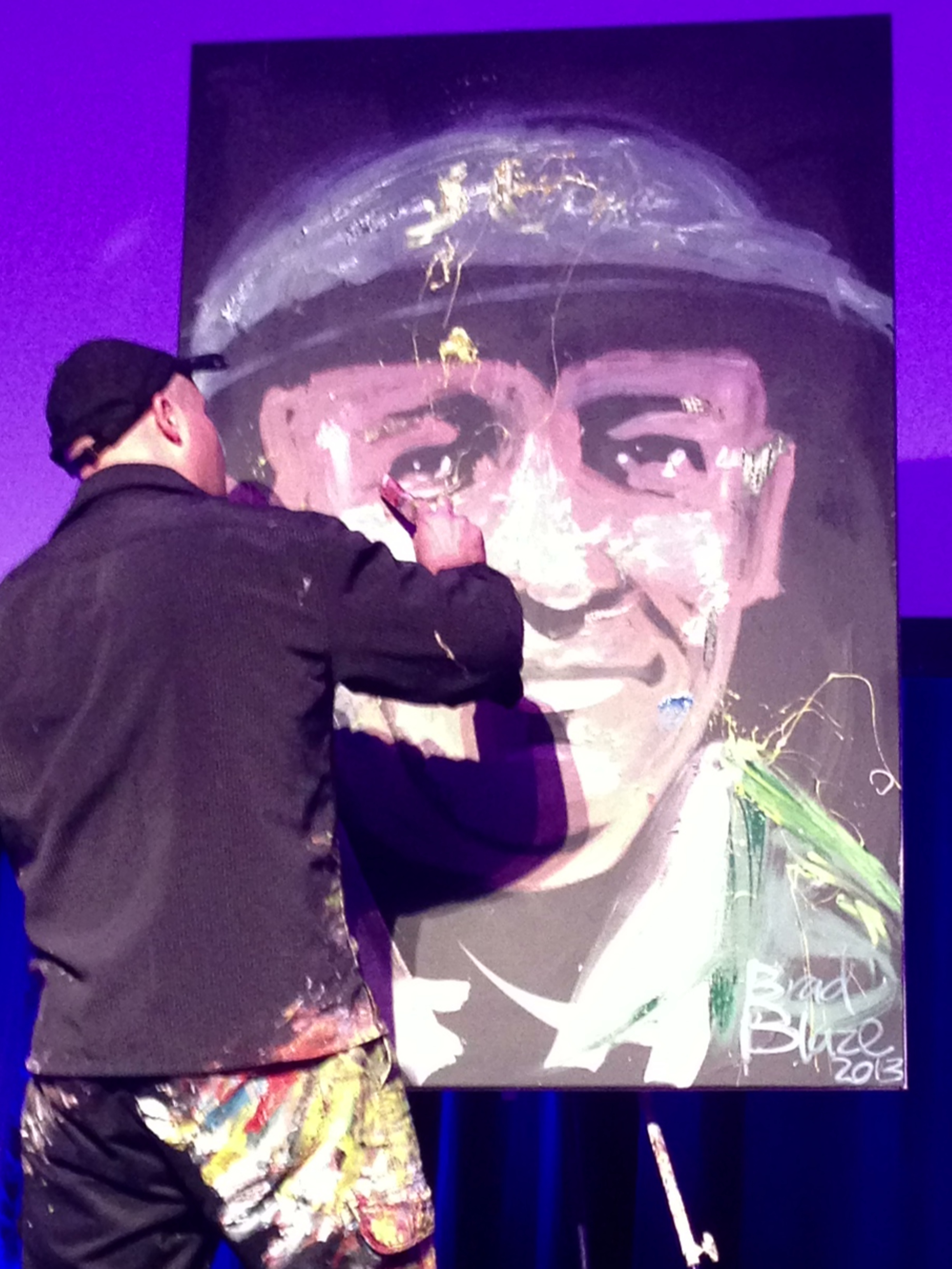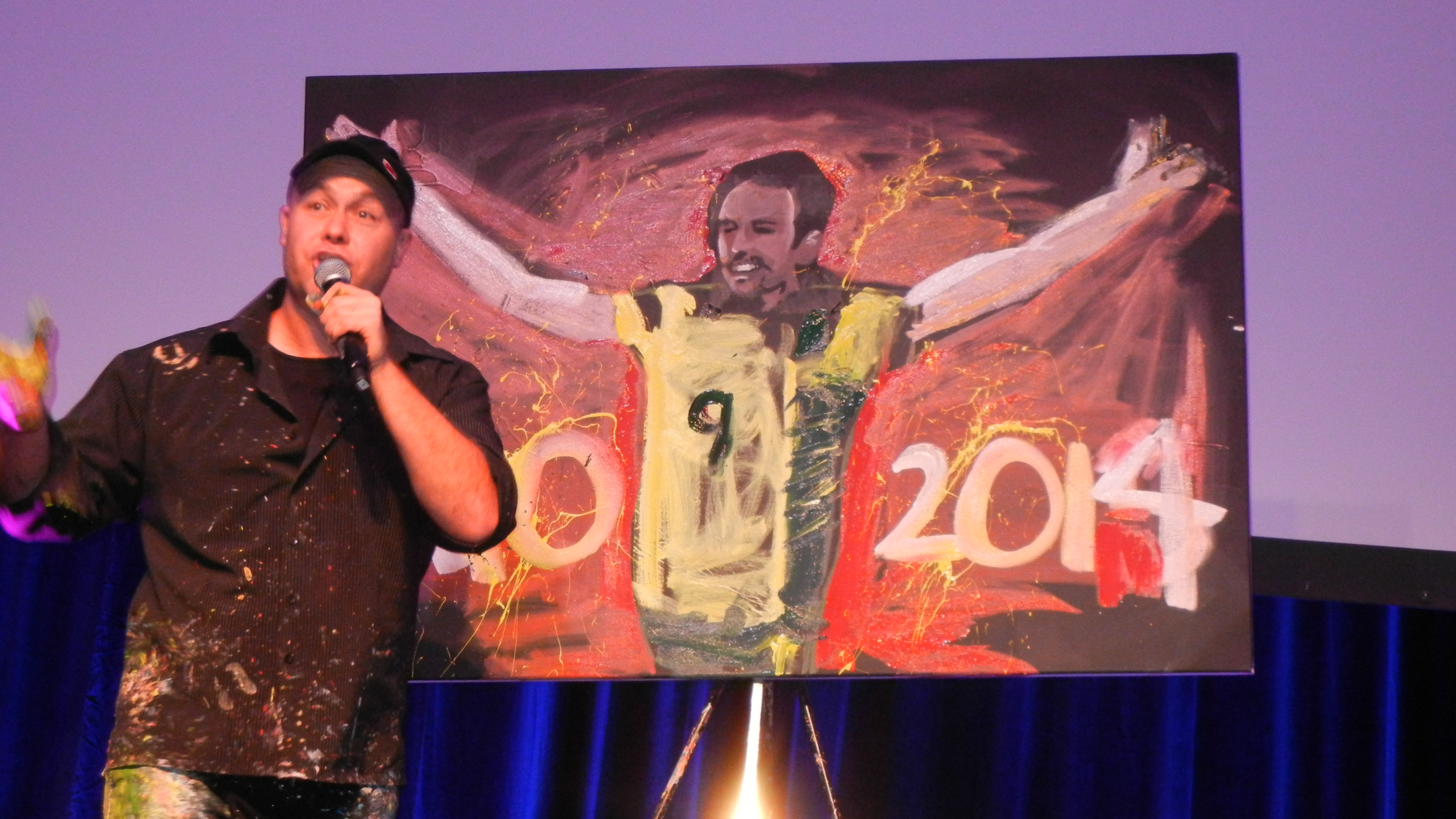 The conference dinner also saw delegates introduced to "speed painter", Brad Blaze. In double quick time, Brad produced, whilst continuing to entertain his audience, three marvellous paintings (see below) on canvas which were subsequently auctioned to generate a substantial sum for charity. Another painting had been created earlier for ACU - this was of the ACU patron saint, Mary MacKillop.