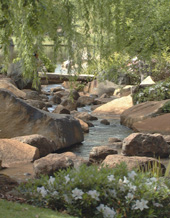 large rocks in Ju Raku En were accurately placed by the designer of the garden, Professor Kinsaku